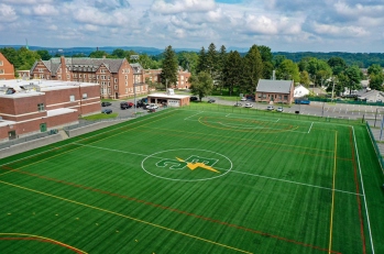 Leary Field, located directly behind the Maguire Center, home of the Men’s & Women’s Soccer, Field Hockey, and Men’s & Women’s Lacrosse teams. The artificial turf, comprised of FieldTurf monofilament prestige series, includes a Musco lighting system.